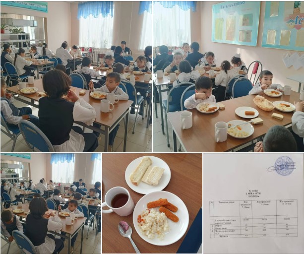 Әлия Молдағұлова атындағы орта мектебінің оқушыларына күнделікті ыстық тамақ ас мәзірі бойынша уақытында берілуде.